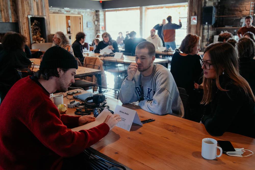 Met code oranje in het achterhoofd gingen wij langs op zaterdag, de laatste dag van de bootcamp, om de spetterende editie mee af te sluiten. Voor de artiesten startte het weekend al op donderdag en dat met een kleine verwelkoming en kennismaking. Het was pas op vrijdag dat het echte werk stond te gebeuren. De artiesten kregen de kans om aan de hand van verschillende sessies kennis te maken met hoe de muziekwereld nu echt werkt. Zo kregen de artiesten van bookers en labels een uitleg over hoe de muziekindustrie eigenlijk in elkaar zit, werden er tips gegeven voor de livestrategie en gaf onder andere Studio Brussel uitleg over hoe beginnende bands hun muziek op de radio kunnen krijgen.