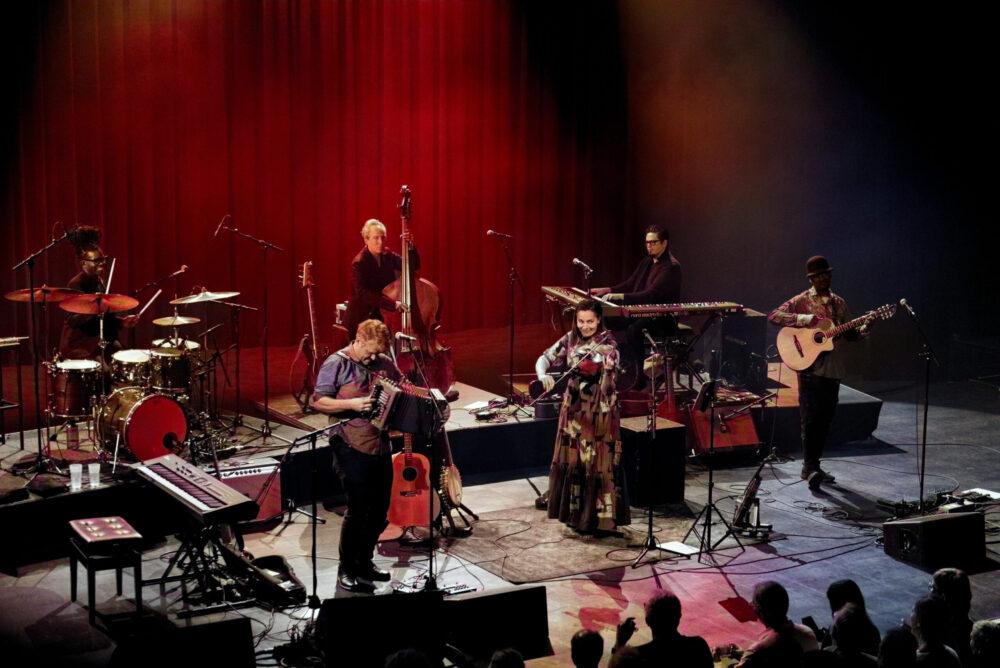De gemoedstoestand ging daarna weer de lucht in met twee nummers die door de gitarist van de band, Niwel Tsumbu, werden geschreven. Het tempo werd daarmee verschroeiend omhooggetrokken en Tsumbu nam ook de zang voor zich, waarmee hij de Congolese volksmuziek in de kijker zette. Met het zeer funky “Hen In the Fox House” kregen we nog zo’n heerlijk uptemponummer, waarbij het deze keer weer Giddens was die de klasse van haar stem mocht etaleren. Wederom leverde dat een enthousiast dansende en meeklappende menigte op, die ook tijdens “Breaking Up Christmas” – met de band heel dicht bij elkaar en een trommel in plaats van drums – aan zijn trekken kwam wat dat betreft. Als we met twee woorden de avond zouden moeten samenvatten, dan was dat simpelweg met ‘good vibes’.