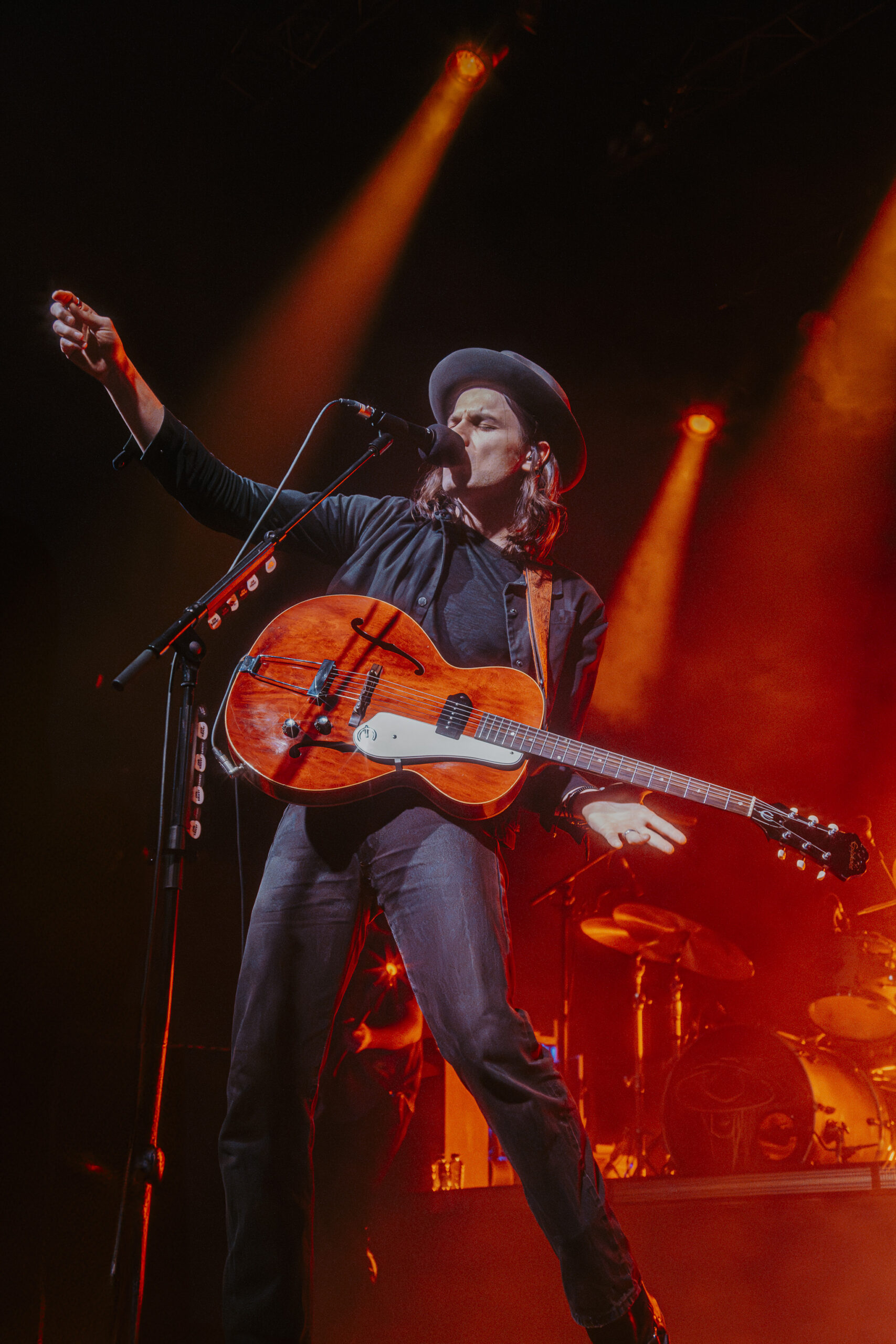 Zodra de eerste tonen van het catchy “Up All Night” door een uitverkochte La Madeleine weergalmden en een verschijning met lange lokken, een typerende zwarte hoed en een gitaar in de hand op het podium dook, kon je je beginnen afvragen of je trommelvlies effectief kan scheuren door het gegil van het publiek rondom je. Sfeer ingezet? Check! Die uitgelaten stemming sloeg echter al snel om naar melancholie met “Give Me The Reason”. James Bay bracht het nummer alsof hij vastbesloten was om alle gebroken harten in de zaal voor één avond te helen. De melancholische setting bleek echter van korte duur; met “If You Ever Want To Be In Love” kleurde La Madeleine gelukzalig, en Bay wist exact hoe hij daarop moest inspelen: ‘I love the way you sound! I could play another song or just do this one all night?’, lachte hij.